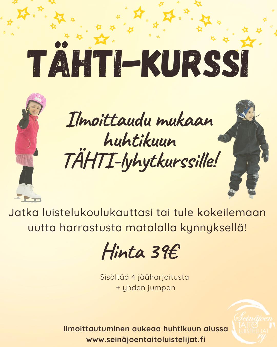 Ilmoittautuminen käynnissä! Otamme uusia luistelijoita esimerkiksi luistelukouluun, koululaisten harrastajaryhmään JääTaitureihin  ja aikuisten Skate Fit & Skills tunneille (ent.kuntoluisteluun).
